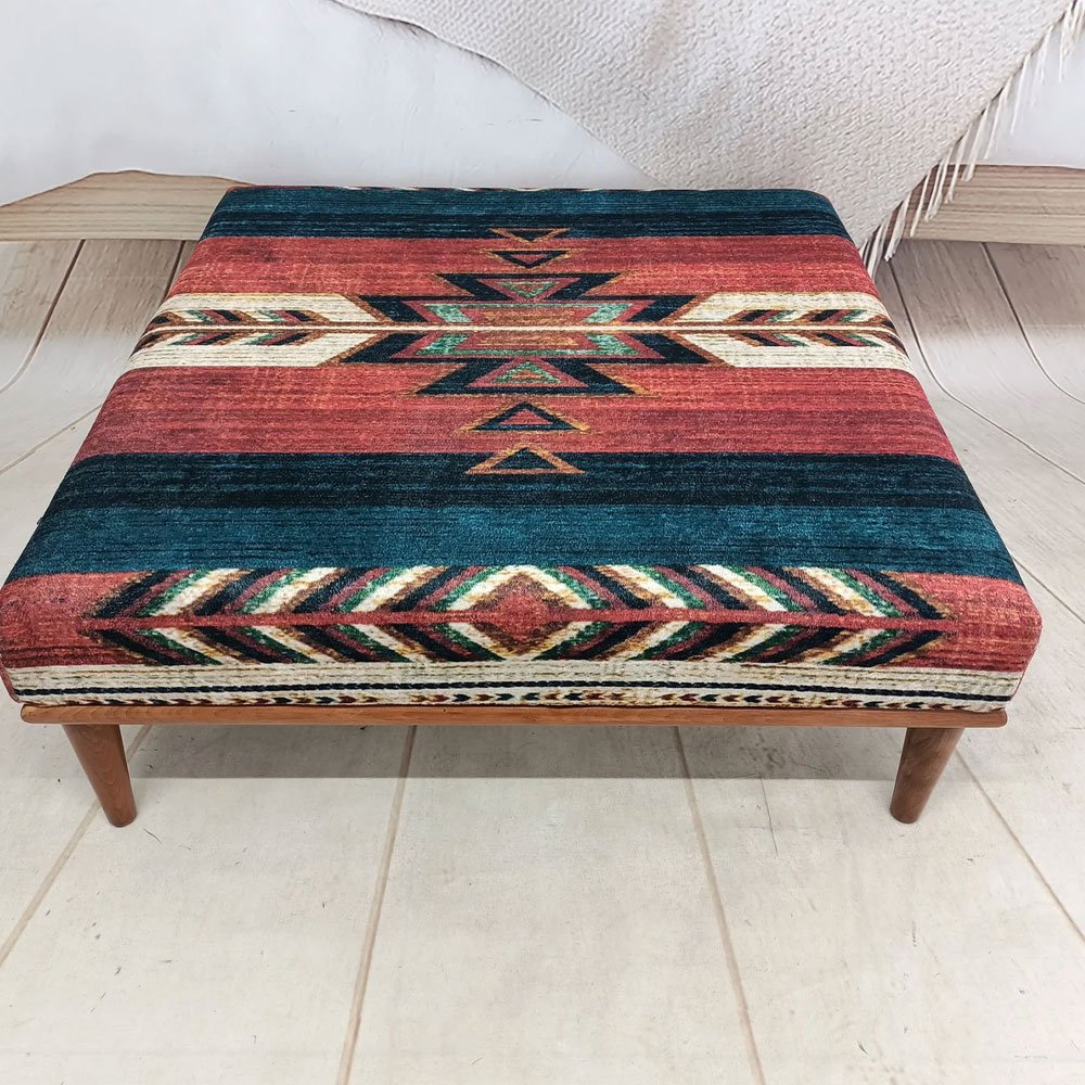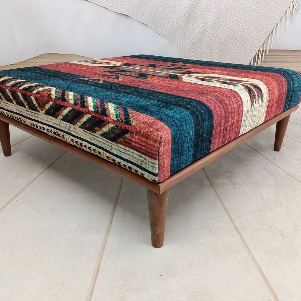 Verwandeln Sie Ihr Zuhause mit dem bedruckten türkischen Kilim Ottoman Couchtisch, einer perfekten Mischung aus traditioneller Handwerkskunst und moderner Funktionalität. Dieses handgefertigte Stück verleiht jedem Raum eine einzigartige Note und dient als Couchtisch oder Fußbank. Sein geringes Gewicht und die einfache Montage machen ihn zu einer praktischen Wahl für dynamische Wohnräume.