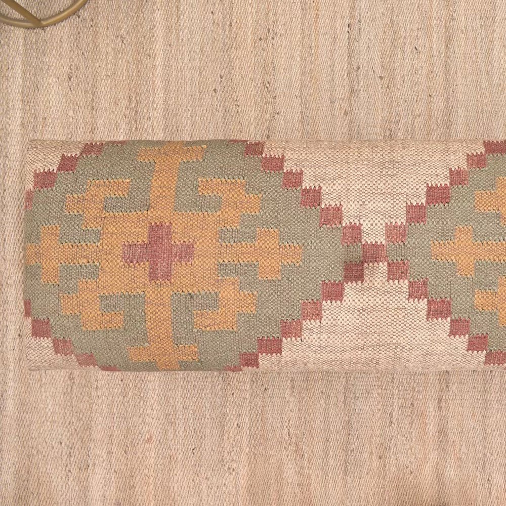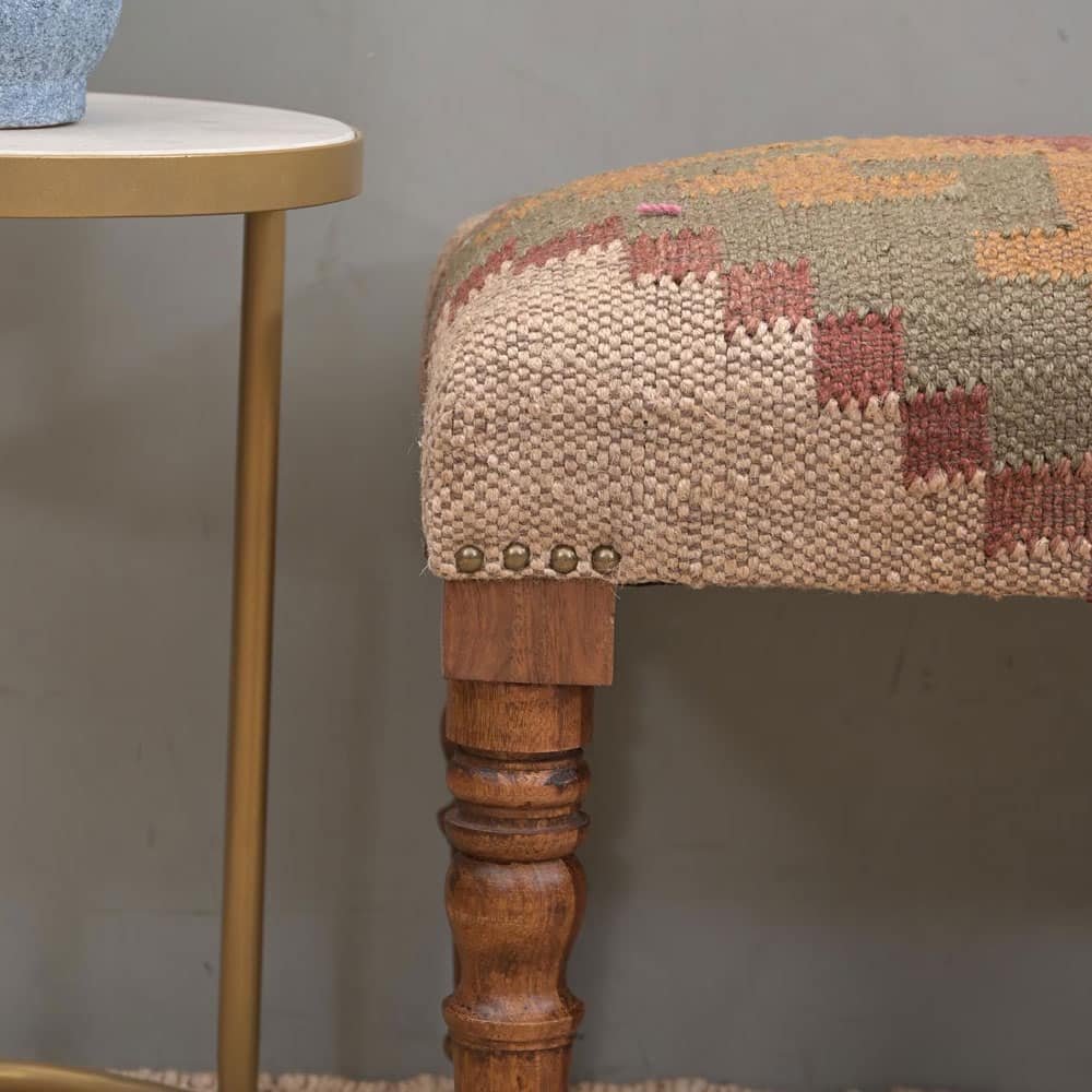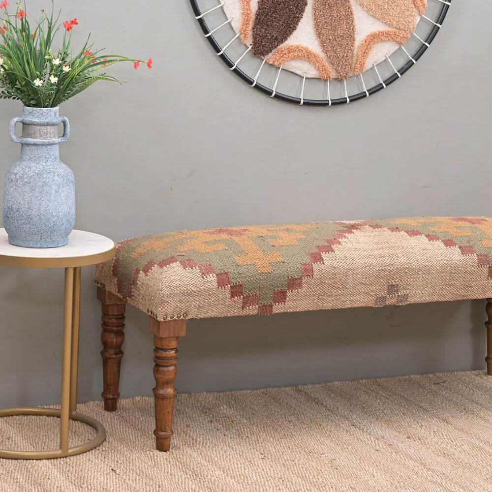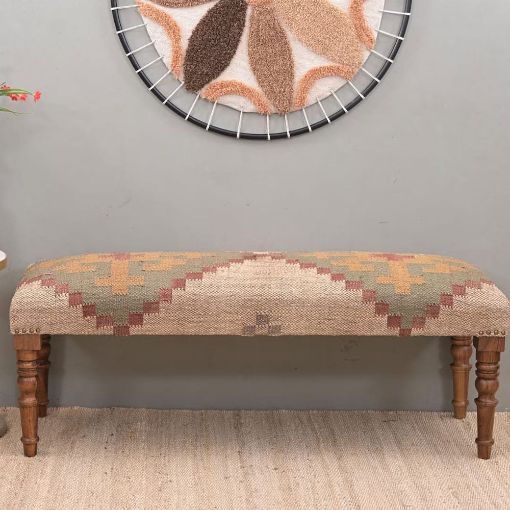 Bringen Sie Raffinesse und Eleganz in Ihr Zuhause mit unserer gepolsterten Woll-Jute-Kelim-Ottomanbank. Dieses von erfahrenen Handwerkern handgefertigte Stück dient als Bank, Ottomane oder stilvoller Akzent und passt nahtlos zu türkischen, böhmischen oder modernen Einrichtungsstilen. Erleben Sie die perfekte Mischung aus Haltbarkeit und schickem Design in Ihrem Wohnbereich.