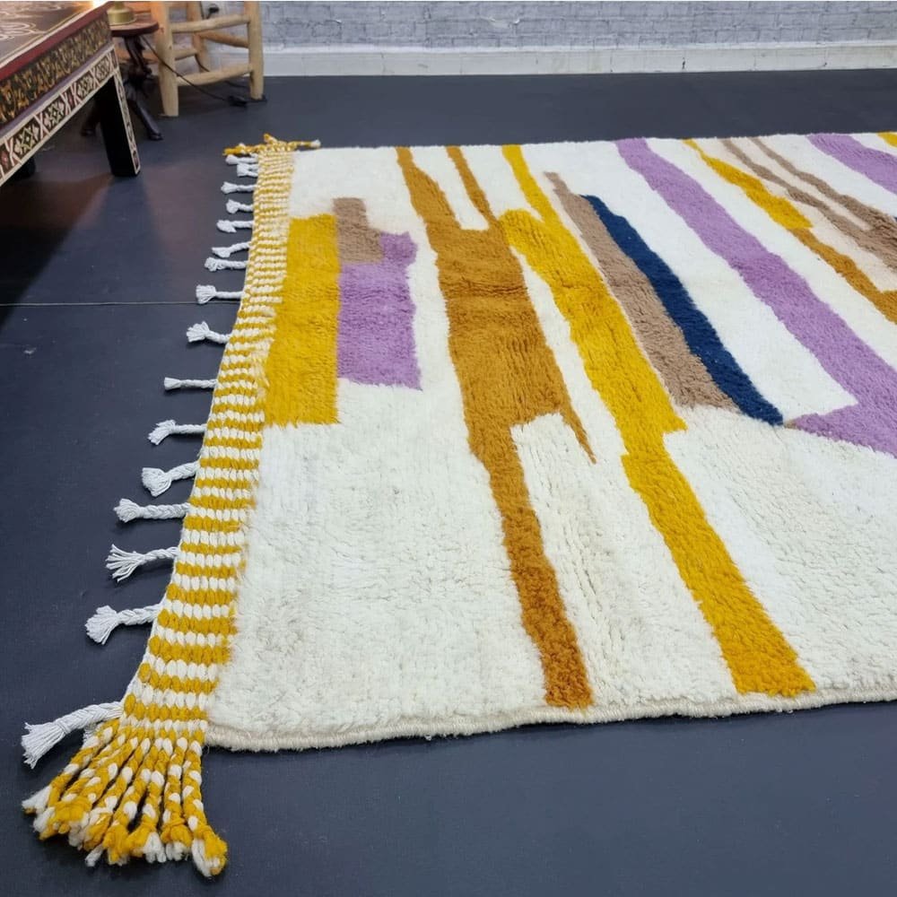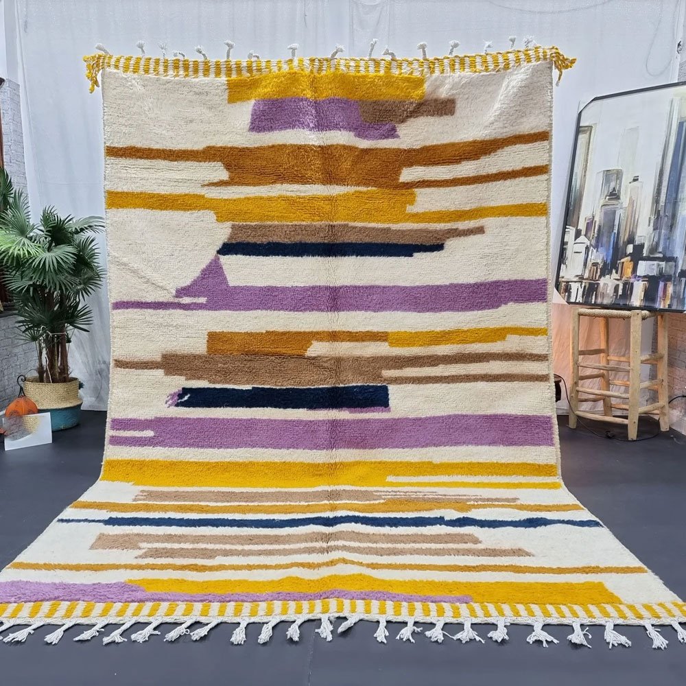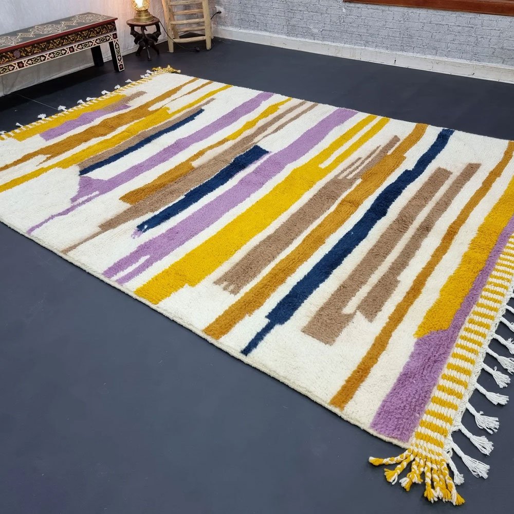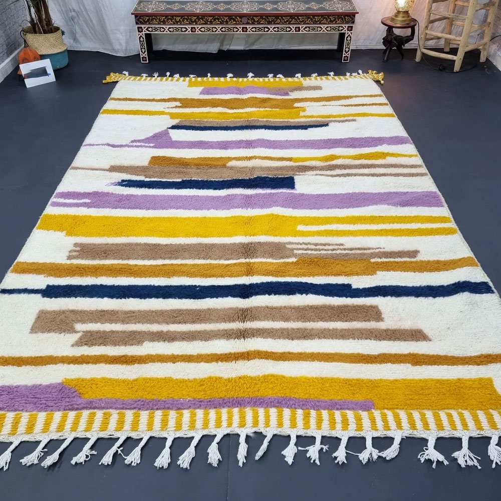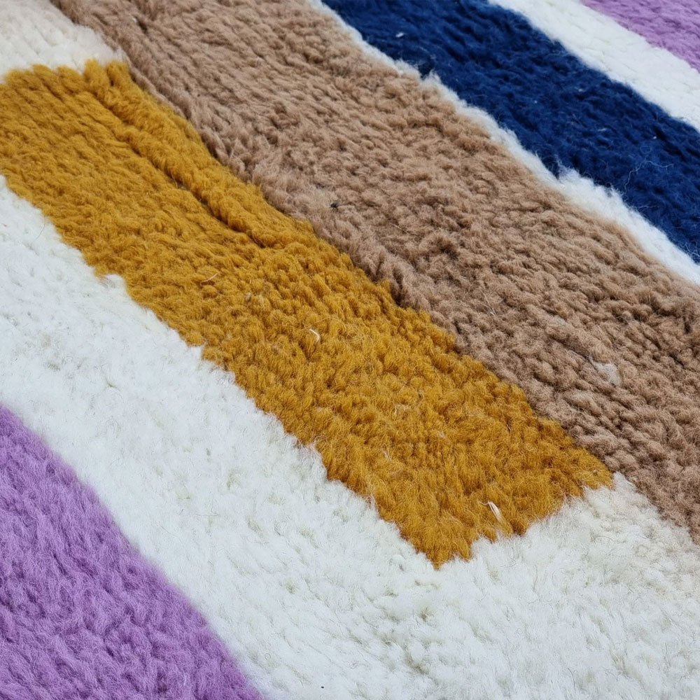Verwandeln Sie Ihr Zuhause mit dem gestreiften modernen Kilim-Wollteppich, einem Meisterwerk, das von geschickten Kunsthandwerkern des Zanafi-Stammes handgewebt wurde. Dieses einzigartige Stück verbindet komplizierte geometrische Muster mit einem mediterranen Flair und bietet eine zeitlose Eleganz, die jedes Dekor ergänzt. Perfekt, um Ihrem Wohnzimmer oder Ihrem Ausstellungsraum einen Hauch von Eleganz zu verleihen.