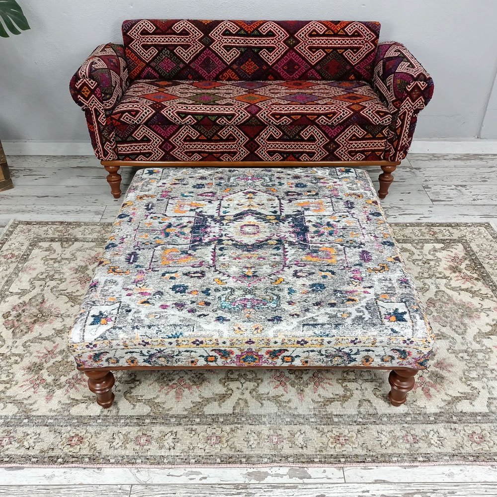 Verschönern Sie Ihren Wohnbereich mit einem einzigartigen türkischen Kilim-Ottoman