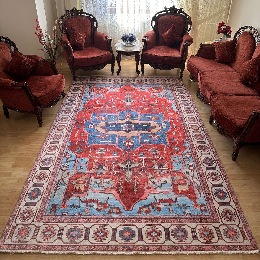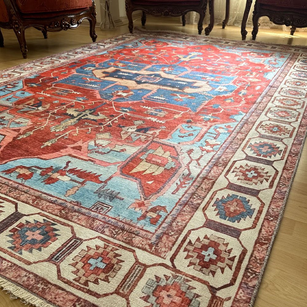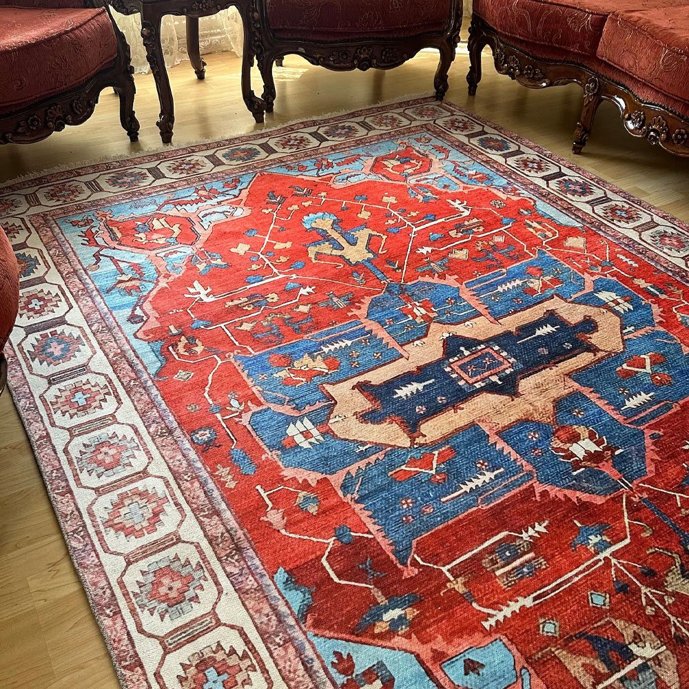 Verwandeln Sie Ihren Wohnraum mit unserem Teppich mit türkischem Kelim-Muster, einer fesselnden Mischung aus Tradition und Stil. Dieser Teppich aus reiner Baumwolle mit leuchtenden, ausbleichsicheren Farben bietet einen weichen, seidigen Griff und einen rutschfesten Untergrund für ultimativen Komfort. Er eignet sich perfekt für jeden Raum und verleiht Ihrer Einrichtung einen antiken Charme.
